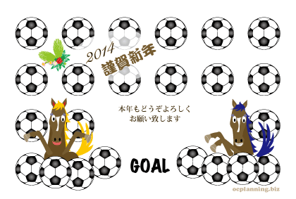 サッカー ボールと馬の絵の年賀状 | |