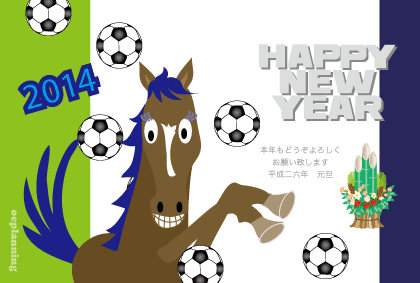 | [サッカー ボールと馬の絵の年賀状をもっと見る] |